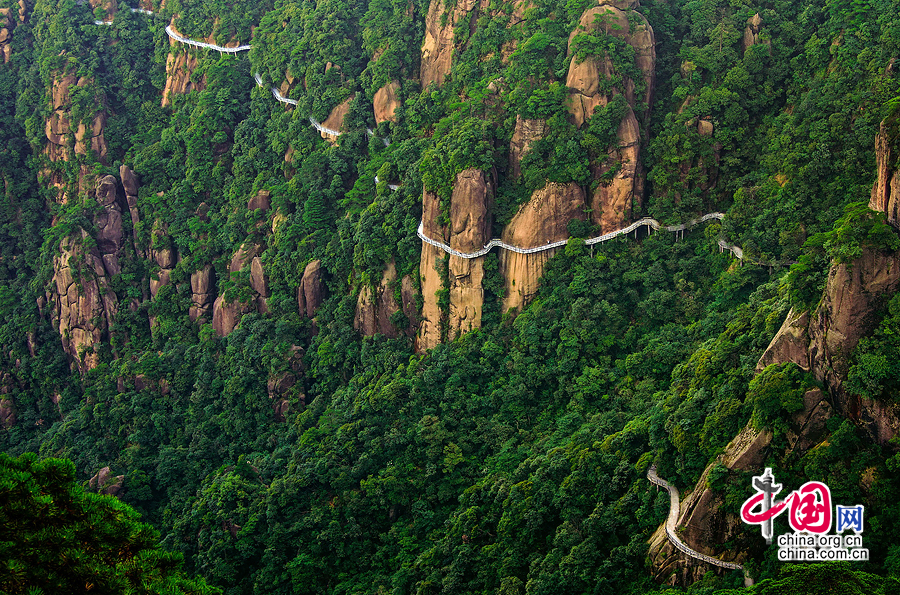 - Der Sanqing Mountain, genannt der "erste Zauberberg von Jiangxi", befindet sich an den Grenzen der Städte Shangrao und Dexing in der Provinz Jiangxi. Er ist ein heiliger Ort für Taoisten und außerdem bekannt für seinen Granitwald, die Schluchten und die einzigartige Öko-Landschaft.