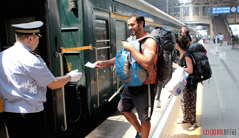 - Jeden Mittwoch wartet ein grüner Zug am Hauptbahnhof von Beijing auf seine Passagiere. Auf den dunkelgrünen Waggons prangt eine weiße Plakette, die die Reiseroute anzeigt: „Beijing-Ulaanbaatar-Moskau“. Im Vergleich zu den weißen modernen Hochgeschwindigkeitszügen springt dieser Zug im Stil der 1990er Jahre sofort ins Auge.