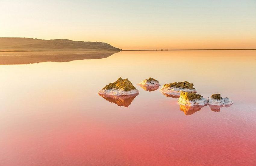 Schlagwörter: Atemberaubender rosa Salzsee Krim