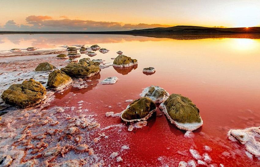 - Der Fotograf Sergey Anashkevych hat vor kurzem den Salzsee Koyashskoye fotografiert, der rosa aussieht. Der Salzsee liegt auf der Halbinsel Krim und in der Nähe des Schwarzen Meers. Es gehört zu den schönsten Landschaftsgebieten auf der Krim.