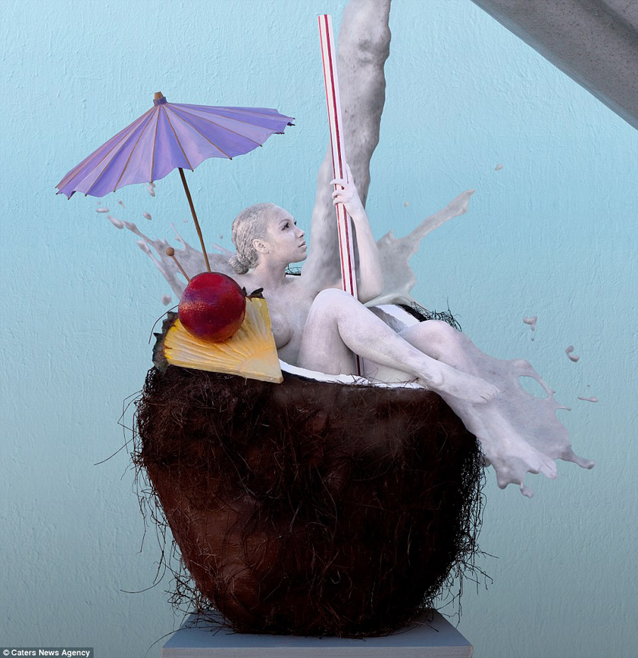 - Betrachten Sie die folgenden Bilder mit Eiscreme, Kuchen oder Hamburger genauer. Sie werden bestimmt etwas Erstaunliches entdecken: In jedem Essen oder Getränk verstecken sich ein oder mehrere menschliche Körper!