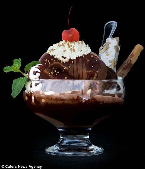 - Betrachten Sie die folgenden Bilder mit Eiscreme, Kuchen oder Hamburger genauer. Sie werden bestimmt etwas Erstaunliches entdecken: In jedem Essen oder Getränk verstecken sich ein oder mehrere menschliche Körper!
