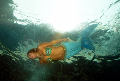 Die Wassernixe bewegt sich frei im Fischschwanz.