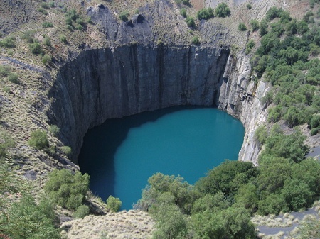 Die Kimberley Diamanten Mine (auch bekannt als „The Big Hole“), hält den Titel als größtes von Hand gegrabenes Loch der Welt. Von 1866 bis 1914 haben daran rund 50.000. Bergarbeiter mit Hacken und Schaufeln gearbeitet – und dabei über 2700 Kilogramm Diamanten hervorgebracht.