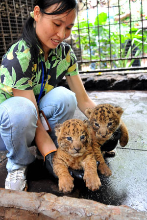 Tigermischlinge erblicken im Wildpark in Hainan das Licht der Welt