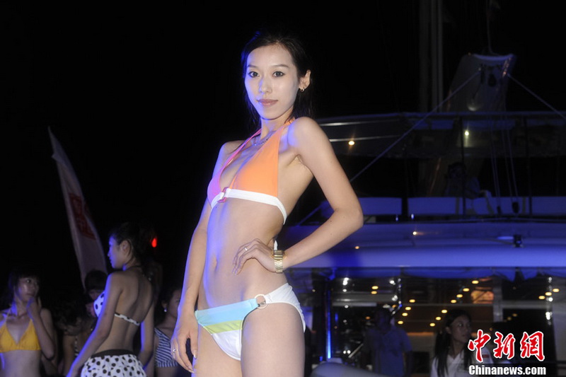 Am vergangenen Sonntag startete das Marinefest 2010 in Qingdao, das bis zum Ende August dauern wird. Zu Beginn des Festes fand am Abend eine Bikini-Party auf einem privaten Kreuzfahrtschiff im Olympischen Segelzentrum Qingdao statt. Badenixen in bunten Bikinis genossen den Abend auf dem Schiff sichtlich. (Foto von Chinanews)