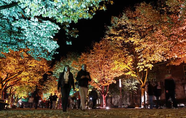 - Das Brandenburger Tor wurde beim Berliner Lichterfest hell beleuchtet. Während des zwei Wochen dauernden Fests erstrahlen mehrere Wahrzeichen der deutschen Hauptstadt. Unter ihnen sind zahlreiche Boulevards, Plätze, Türme sowie historische und moderne Gebäude.