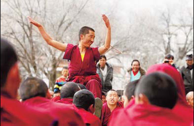 - Das Mönlam, oder das Große Gebet, ist eines der wichtigsten Feste im tibetischen Buddhismus. Massen an Buddhisten kamen am Samstag zum Jokhang-Tempel in Lhasa zum Mönlam. Am letzten Tag des achttägigen Fests versammelten sich Mönche zum Gebet und zur Ausführung religiöser Rituale.
