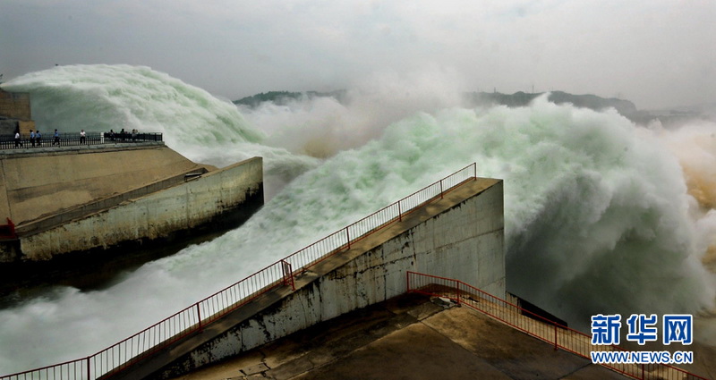 Zum Hochwasserschutz wird seit Dienstag Wasser über die Xiaolangdi-Talsperre am Gelben Fluss abgeleitet. Derzeit erreicht die Durchflussmenge 4000 Kubikmeter pro Sekunde. Dies sorgt für einen atemberaubenden "Wasserfall" am Gelben Fluss, welcher eine Anzahl von Touristen zur Talsperre zieht. Nachrichten von Xinhua zufolge soll die Ableitung des Wassers bis zum 30. Juni dauern. (Fotos von Xinhua)