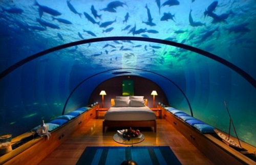 Das Unterwasser-Hotel auf den Malediven soll beim Weltuntergang nicht nur sicher sein, sondern ist auch eine gemütliche Unterkunft.