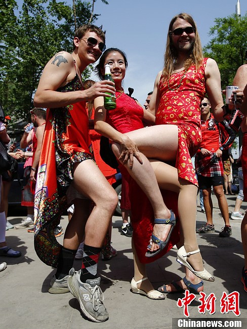 Am Sonntag eilten Hunderte von Läufern in roten Röcken durch Shichahai, einem bekannten Reiseziel im Zentrum der Hauptstadt. Es handelte sich um den "Red Dress Run", der ursprünglich aus Indonesien stammt.