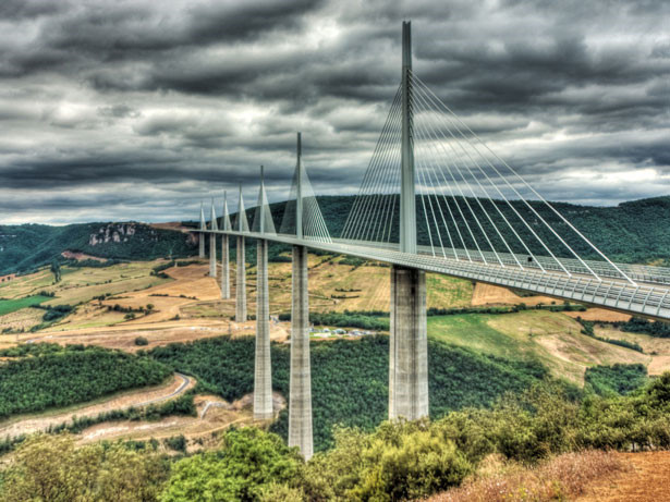 Die Brücke von Millau führt in Südfrankreich eine Autobahn über den Tarn.