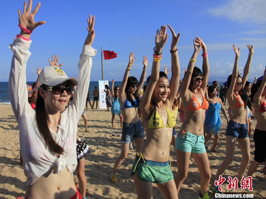 Gestern feierten tausend Menschen auf der Küste in Sanya, der Stadt im Süden der südchinesischen Inselprovinz Hainan, eine Bikini-Party, die für Mode und Gesundheit warb.