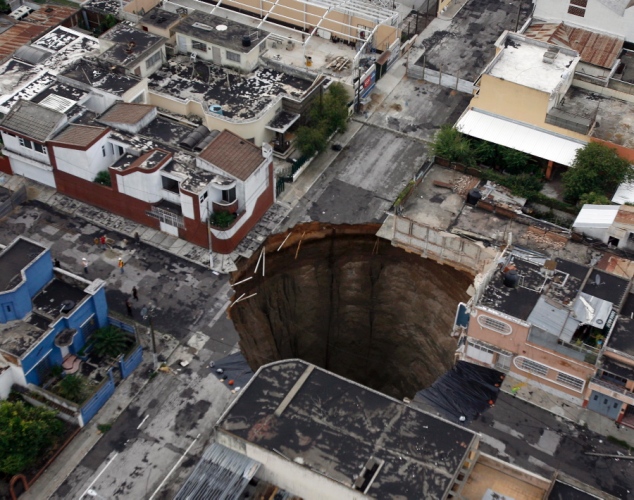 An einer Kreuzung entsteht ein riesiges Erdloch. Guatemala-Stadt, Guatemala, 2. Juni 2010.