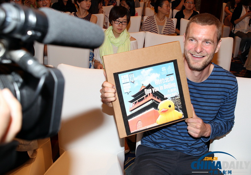 Die Mega-Quietschente, welche der Holländer Florentijn Hofman entwickelt hat, wird am Donnerstag im Gelände der Garten Expo zu sehen sein. Bisher hat diese gelbe Gummiente, die mit ihrer Höhe von 16,5 Metern etwa so groß ist wie ein sechsstöckiges Gebäude, bereits eine Tour in 14 Städten in elf Ländern gemacht.