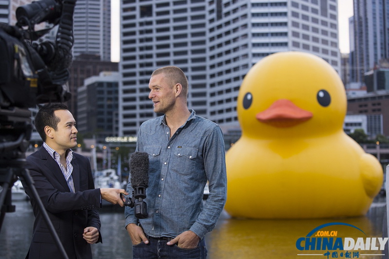 Die Mega-Quietschente, welche der Holländer Florentijn Hofman entwickelt hat, wird am Donnerstag im Gelände der Garten Expo zu sehen sein. Bisher hat diese gelbe Gummiente, die mit ihrer Höhe von 16,5 Metern etwa so groß ist wie ein sechsstöckiges Gebäude, bereits eine Tour in 14 Städten in elf Ländern gemacht.