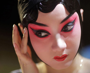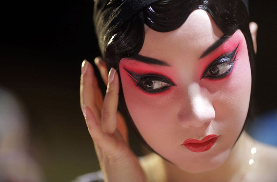 Eine Schauspielerin der Peking-Oper schminkt sich.