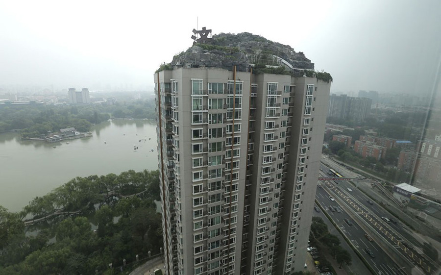 Eine ohne Genehmigung errichtete, private Villa auf dem Dach eines Hochhauses.