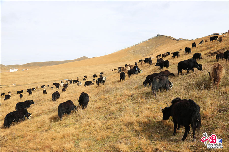 Das Grasland Ruoergai, eines der weltgrößten Grassavannen, befindet sich im Norden von Sichuan. Es ist Heimat für viele tibetische Nomaden, die in Zeltlagern leben und Yaks hüten.