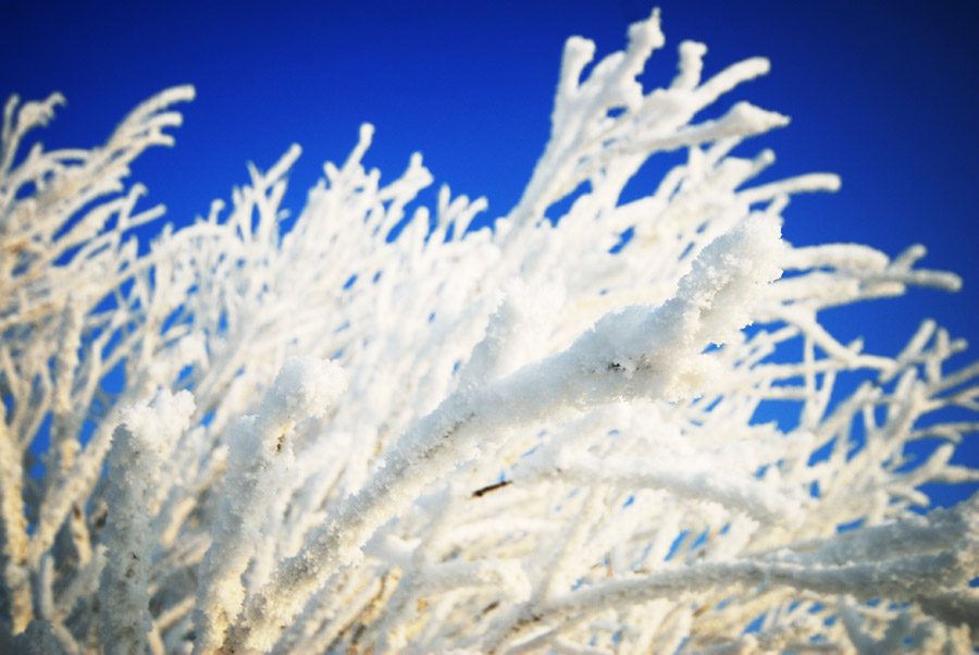 Die Raureif-Landschaft ist ein einzigartiges Wetterphänomen, das entlang dem Songhua-Fluss in der chinesischen Provinz Jilin zu bewundern ist. Durch die niedrigen Temperaturen und durch Nebel kann der Raureif gewöhnlich jeden Winter am Wasser in Jilin beobachtet werden.