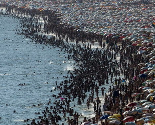 Derzeit hat die Sommerhitze auf der Südhalbkugel Rio de Janeiro, die zweitgrößte Stadt Brasiliens, fest im Griff. Um sich zu abzukühlen, strömen zahlreiche Menschen an die Küste, was für ein spektakuläres Szenario sorgt.
