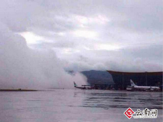 - Am Dienstag wurde am Kunming Changshui International Airport in der südwestchinesischen Provinz Yunnan ein seltenes Phänomen beobachtet. Augenzeugen zufolge entstand vom Boden ausgehend eine riesige "Wolkenwand.