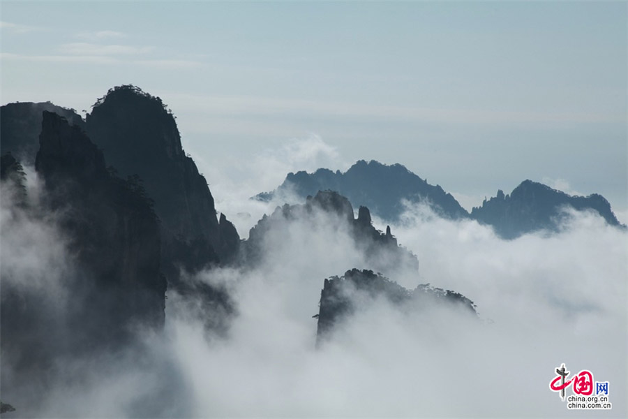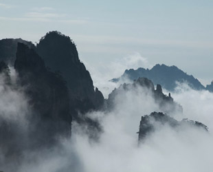 Der Huangshan-Berg mit seinen Wolkenmeeren, aufragenden Gipfeln, knorrigen Kiefern, fantastisch geformten Felsen und fesselnden Legenden ist zum Symbol für Schönheit für chinesische Landschaften geworden.