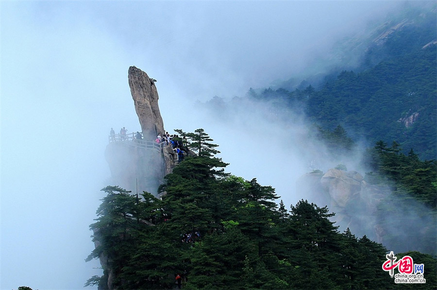 Der Huangshan-Berg mit seinen Wolkenmeeren, aufragenden Gipfeln, knorrigen Kiefern, fantastisch geformten Felsen und fesselnden Legenden ist zum Symbol für Schönheit für chinesische Landschaften geworden.