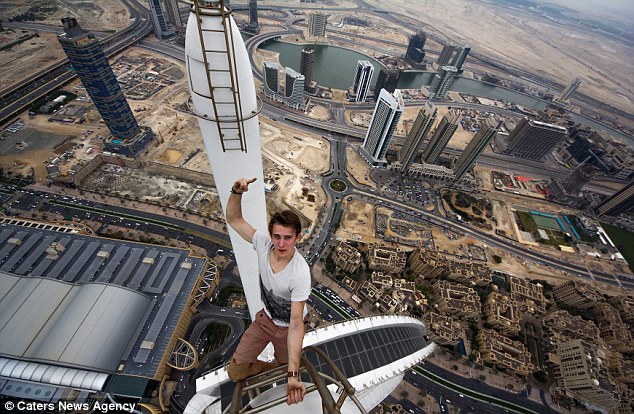 Alexander Remnev, ein waghalsiger Junge aus Russland, hat vor kurzem schwindelerregende Fotos von den Dächern einiger Wolkenkratzer in Dubai aufgenommen, berichtete die britische Tageszeitung Daily Mail.