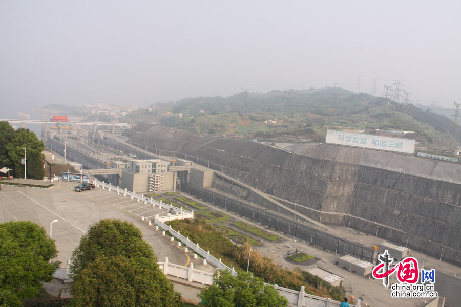 Am nächsten Tag lässt sich die Schleuse bei der Besichtigung des Dammes auch von oben betrachten.