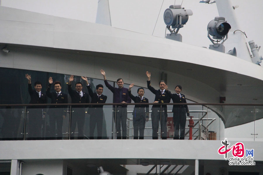 Die Crew winkt noch einmal Lebewohl.