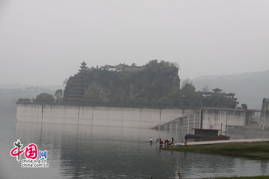 Die "Felsenschatzfestung" Shibaozhai liegt auf einem gigantischen Betonsockel.