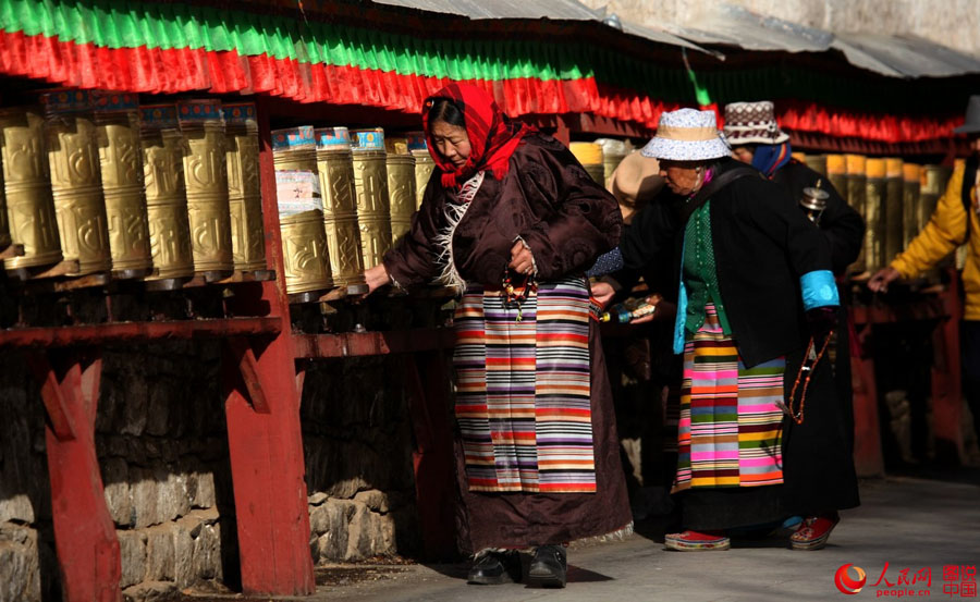 Lhasa ist nicht nur die politische Hauptstadt des Autonomen Gebiets Tibet, sondern auch das geistige Zentrum des tibetischen Buddhismus. Täglich versammeln sich zahlreiche fromme Pilger mit Gebetsmühlen am Potala-Palast und Jokhang.