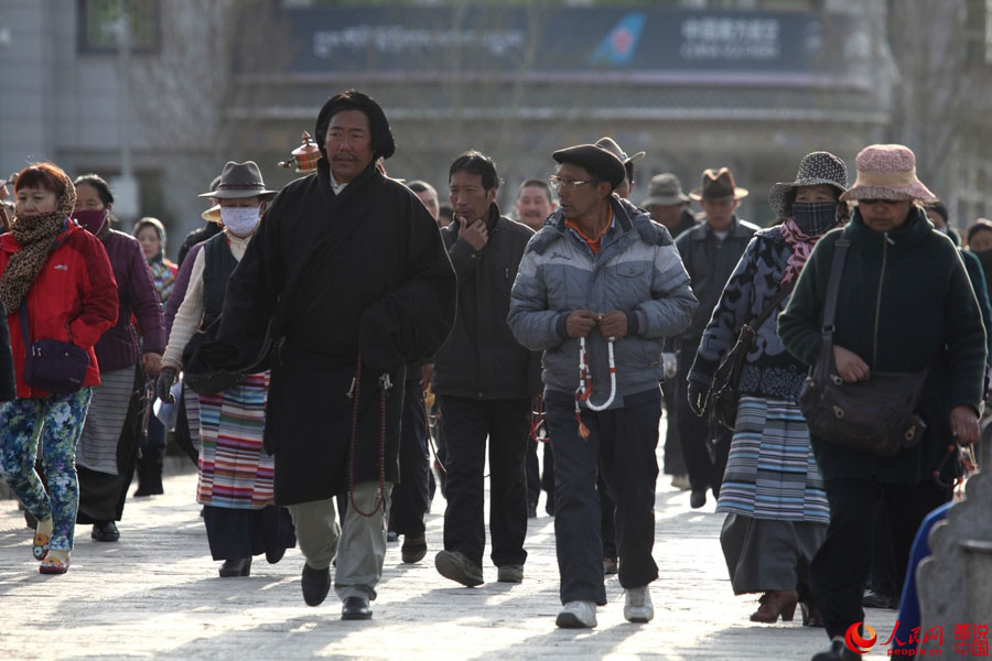 Lhasa ist nicht nur die politische Hauptstadt des Autonomen Gebiets Tibet, sondern auch das geistige Zentrum des tibetischen Buddhismus. Täglich versammeln sich zahlreiche fromme Pilger mit Gebetsmühlen am Potala-Palast und Jokhang.