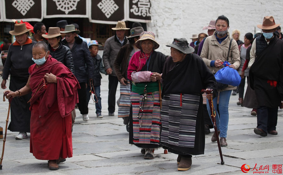 Lhasa ist nicht nur die politische Hauptstadt des Autonomen Gebiets Tibet, sondern auch das geistige Zentrum des tibetischen Buddhismus. Täglich versammeln sich zahlreiche fromme Pilger mit Gebetsmühlen am Potala-Palast und Jokhang.