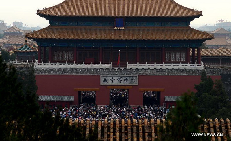 Das nördliche Tor des Palastmuseums in Beijing ist am zweiten Tag der Ferien zum chinesischen Nationaltag voll von Touristen (Foto vom 2. Oktober 2014).