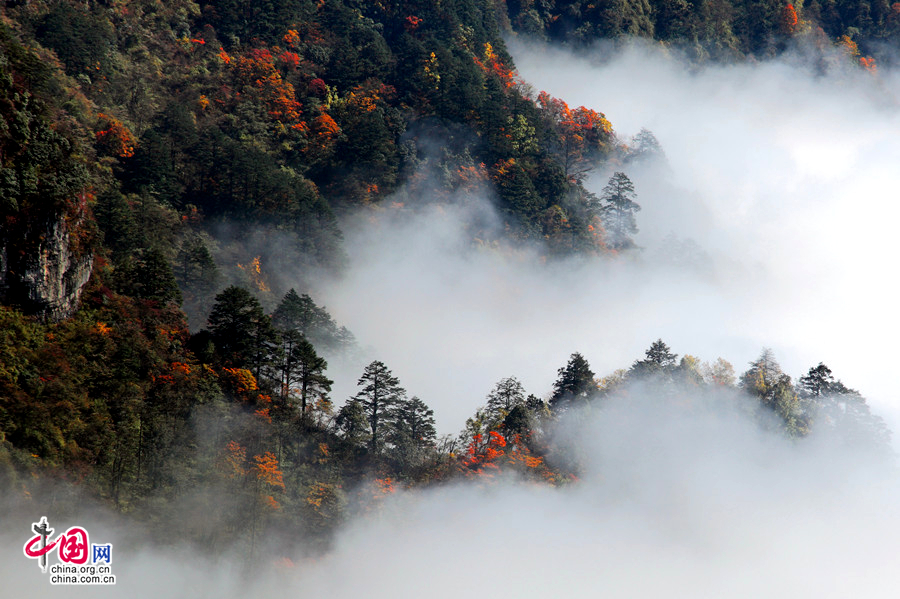 Das Gebirge Emei befindet sich in der Stadt Emei in der südwestchinesischen Provinz Sichuan und zählt zu den vier buddhistischen heiligen Gebirgen in China. Im goldenen Herbst sieht das Gebirge wie ein Märchenland aus.