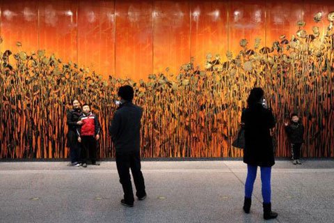 Eine Show schöner Landschaften in Wasserstädten SüdchinasFünfzehn U-Bahn Stationen in Hangzhou sind mit einer Vielzahl öffentlicher Kunst verziert. Das berühmte Steinrelief Sonnenblumen und Sonnenschein in der Station Wulin Square zieht viel Aufmerksamkeit auf sich.