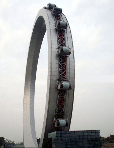 Das große Projekt mit einer Investition von etwa 20 Millionen Euro soll ein Wahrzeichen der Stadt Changzhou werden. Allerdings hat das Riesenrad die Qualitätsprüfung der chinesischen Behörden immer noch nicht bestanden.