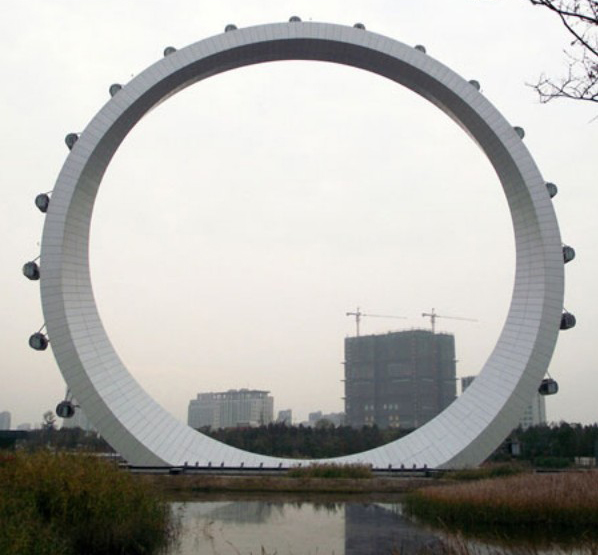 Das große Projekt mit einer Investition von etwa 20 Millionen Euro soll ein Wahrzeichen der Stadt Changzhou werden. Allerdings hat das Riesenrad die Qualitätsprüfung der chinesischen Behörden immer noch nicht bestanden.