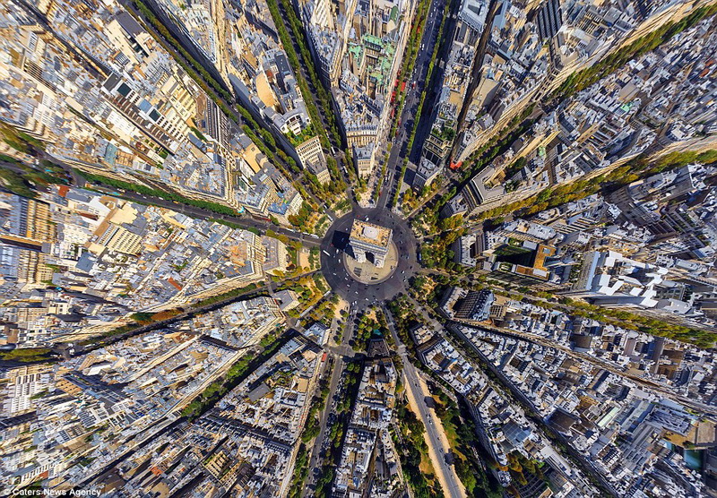 Der Triumphbogen von Paris. Man kann ihn aus der Vogelperspektive kaum noch erkennen, nicht wahr?