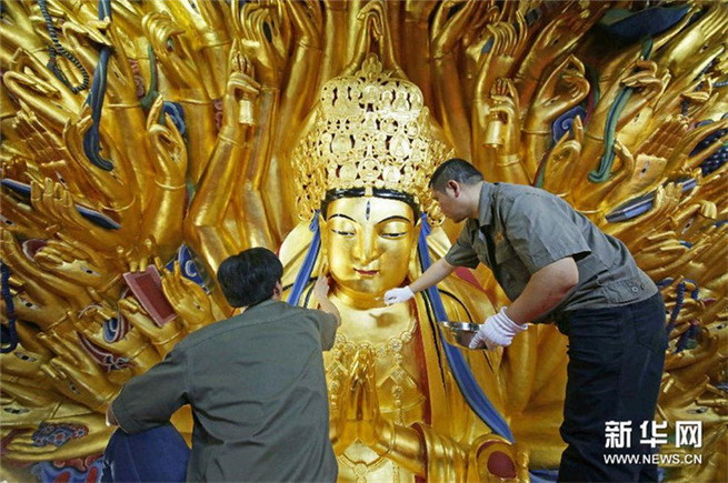 Auf der südlichen Seite des Berges Baoding in der südwestchinesischen Stadt Chongqing ist eine großartige Steinschnitzerei zu bestaunen – der tausendarmige Avalokiteshvara. Die Statue wurde in der Südlichen Song-Dynastie (1127-1279) gefertigt und über all die Jahre so schwer beschädigt, dass vom damaligen Glanz nicht mehr viel übrig blieb.