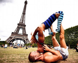Ein Ehepaar aus Australien wirbt weltweit für Yoga, indem es während einer Weltreise vor den berühmtesten Sehenswürdigkeiten komplizierte Yoga-Posen übt.