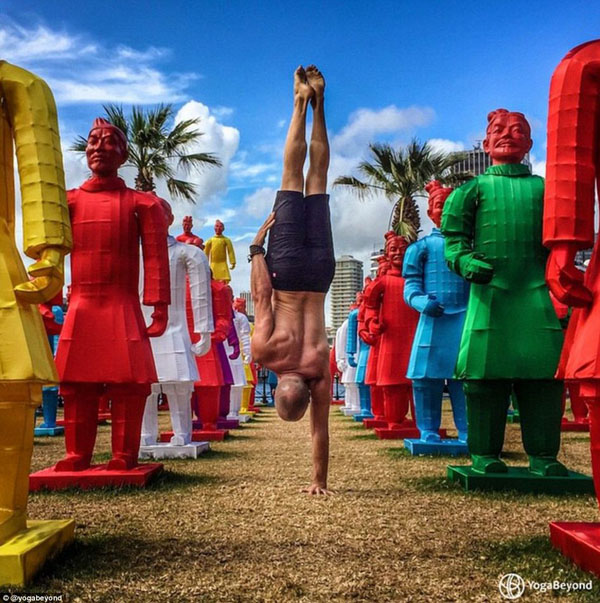 Yoga-Weltreise: Ehepaar posiert vor bekannten Attraktionen
