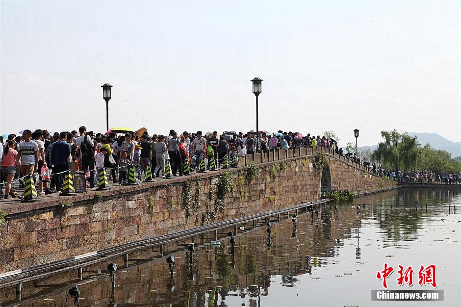 Der von Touristen überfüllte Westsee in Hangzhou in Ostchina.