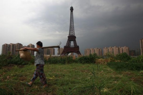 Der Bau von Tianducheng, einem Wohngebiet in Hangzhou, begann 2007. Das Wohngebiet soll ein Verschnitt von Paris sein, mit Pariser Häusern und einem Eiffel-Turm von 108 Metern Höhe. Die verkleinerte Replika des Eiffel-Turms ist von Gemüsefeldern und Wohnblöcken in Tianducheng umgeben. “Wer heute Nachmittag eine Tour durch Paris machen möchte, komme einfach nach Hangzhou“, scherzt ein ausländischer Journalist.