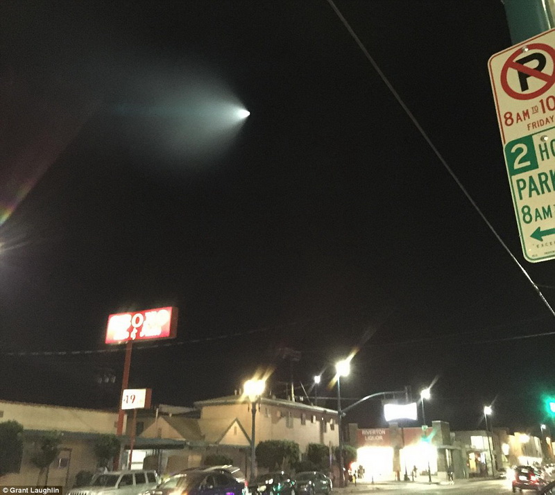 Die abgefeuerte Testrakete der US-Marine strahlt mysteriöses, blau-weißes Licht aus. Einwohner in Los Angeles, darunter viele Prominente, spekulieren im Internet deswegen über ein vermeintliches UFO.