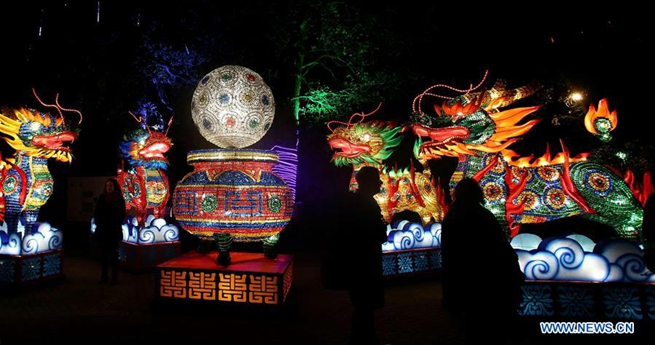 Das Foto vom 12. November 2015 zeigt eine Laterne in Form von Qilin auf der Beleuchtungszeremonie für das Chinesische Lichterfest in Longleat im britischen Wiltshire. Das Fest wurde am Freitag eröffnet. (Xinhua/Han Yan)