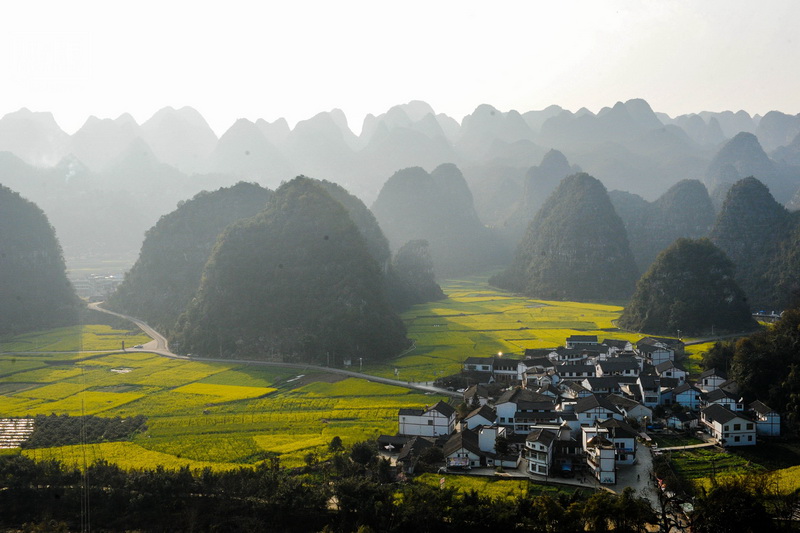 Ein Blick auf das Nahui-Dorf unter dem Wangfenglin-Bergwald in der Provinz Guizhou (Foto vom 21. Februar 2014, Tao Liang/ Xinhua)