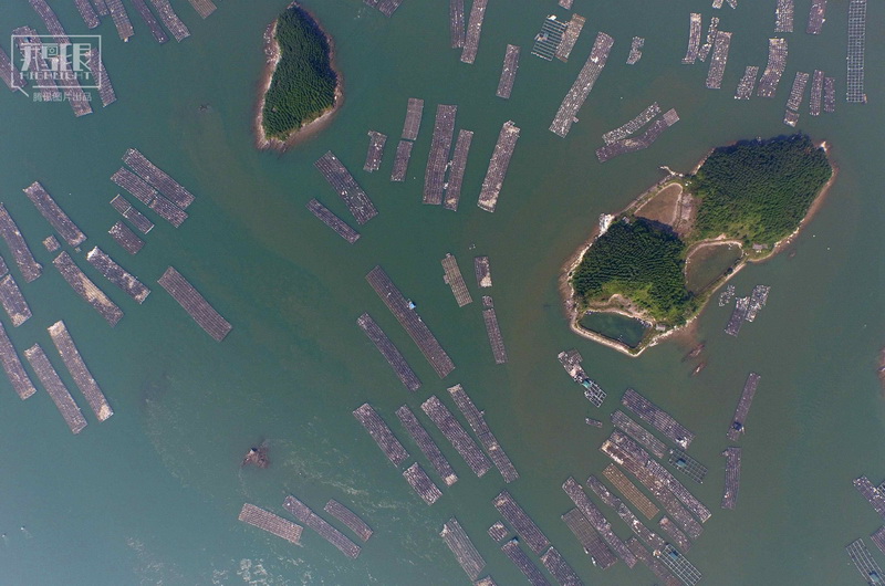Flöße im Vorzeige-Zuchtgebiet für Austern in Qinzhou, im Autonomen Gebiet Guangxi der Zhuang-Nationalität (Foto vom 21. Oktober 2015, Huang Xiaobang/ Xinhua)